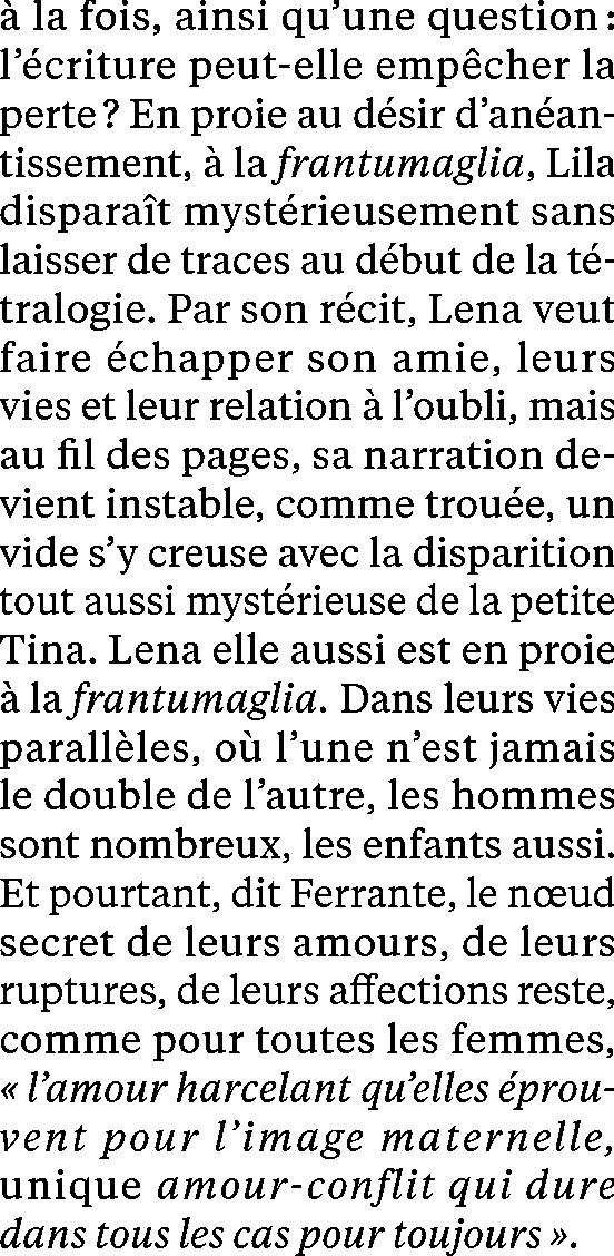 Car, en fin de course, Ferrante nous entraîne d’abord sur une authentique piste de réflexion : qu’est-ce donc
