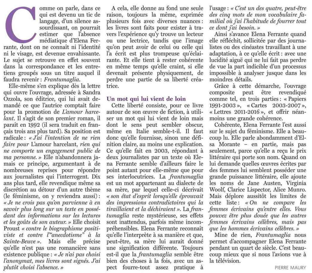 La première édition de La Frantumaglia fut publiée en Italie fin 2003, bien avant que le succès ne l’inonde :